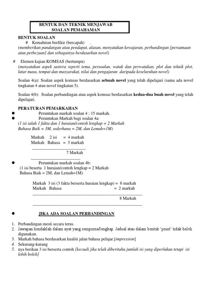 Contoh Soalan Komsas Tingkatan 4 Soalan Ag Otosection