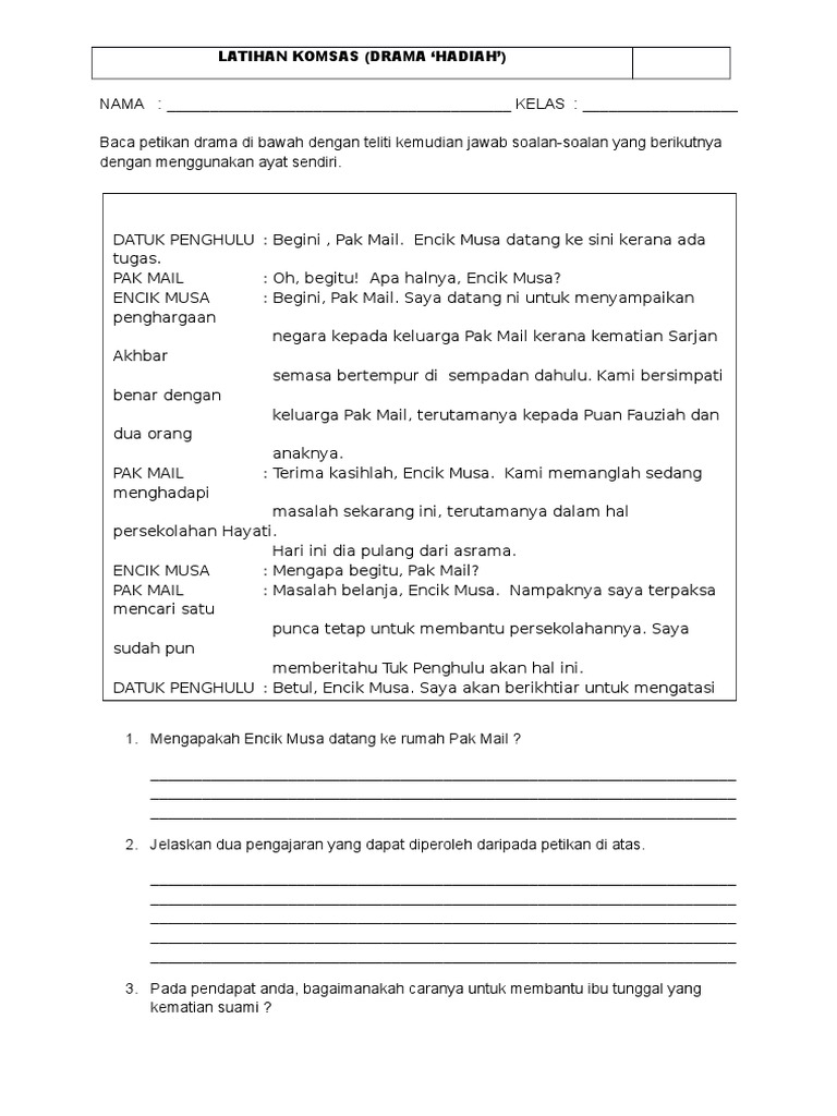 Latihan Komsas Tingkatan 1 Pdf